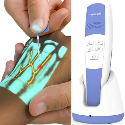 The VS30 uses near-infrared light to detect veins beneath the skin, projecting a clear image directly on the patient for precise IV access.